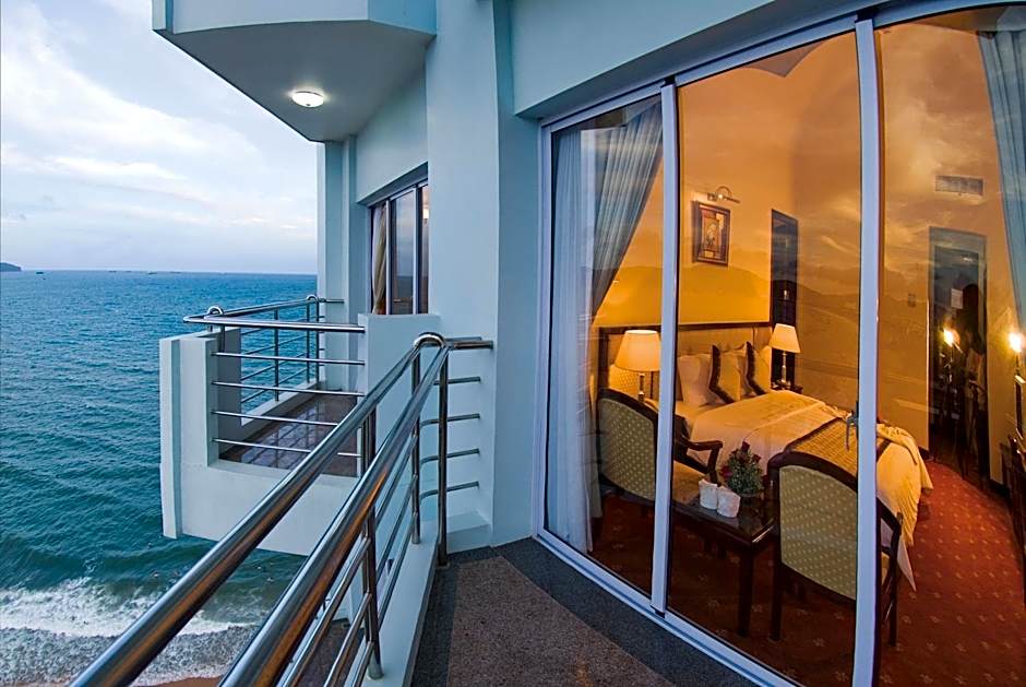 This suite features a balcony with sea views and a seating area.